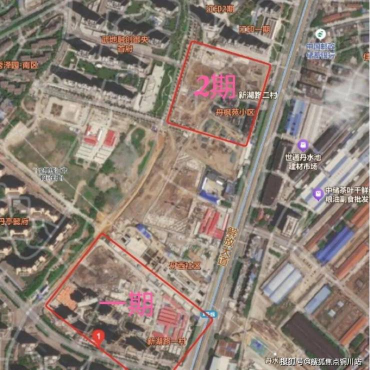 项目二期四至:项目北侧为江印小区;南侧为医院/体育场馆;东侧为解放大道、轨道1号线;西侧为融创御央首府小区;