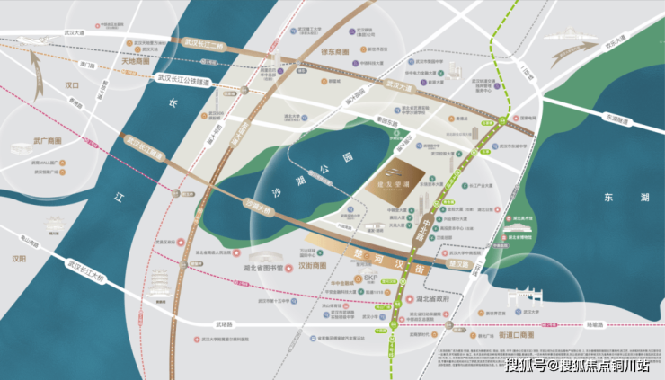 建发·望湖所在的沙湖板块,一直是武汉高端住宅传统板块,周边城市级配套环绕,地段价值不可复制。项目两三公里内汇聚武汉超半数省级以上金融机构,百余家省级行政单位、省属国企办公总部,楚河汉街、武汉SKP等高端商圈,省图书馆、省博物馆等文化地标,以及多家三甲医疗环伺周边。