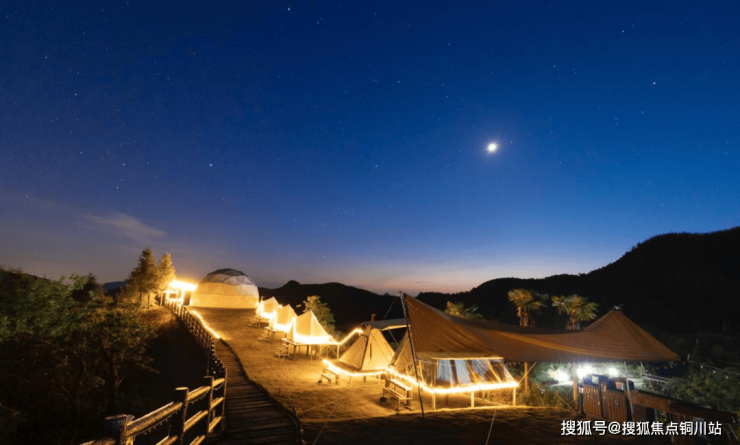 星空露营基地巧妙地依山坡地势而建,如同大自然的神来之笔。它分为两个独具特色的部分,一部分建有9个露营帐篷地台,还贴心地设置了充满烟火气息的烧烤区、惬意的休闲区,配备了视野绝佳的观景台等设施,让游客在享受大自然的同时,也能拥有丰富多彩的休闲时光。