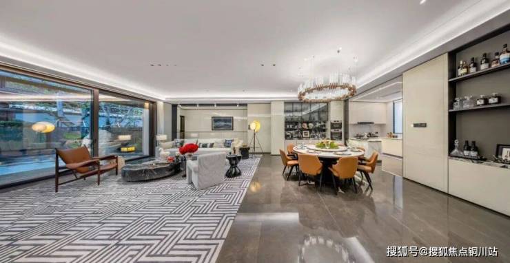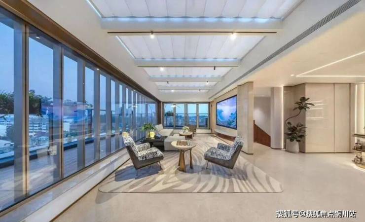 【创新四厅体系,功能独立而联动】约63㎡奢阔双厅、约17㎡家庭拾趣厅、约100㎡顶层星空花厅,实现动与静、对内与对外的完美区隔。其中客餐厅整体面宽近7米,结合山墙落地窗,形成270°环绕采光。
