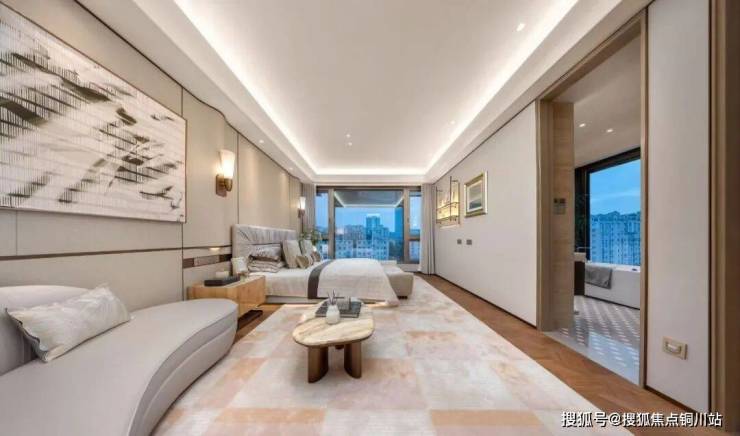 【全套房体系,星级酒店体验融入日常】四个卧室均按星级酒店标准打造为完整套房,尤其主卧开间约6.8米,配270°转角窗,在尺度与观感上全面贴合高端改善需求。