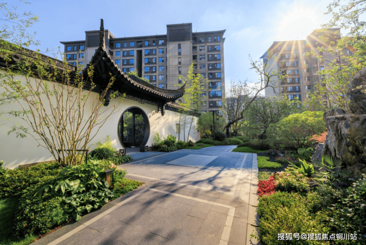 每一个单元入户配备特色中式平台,两侧配置层次丰富的植物组团,匠心打造精致枯山水小景。