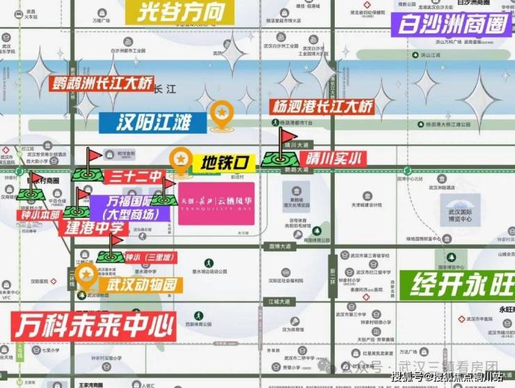 项目自带六班制幼儿园,青年楚才社区(楚才竞赛资源),附近有晴川实验小学,夏明翰小学,建港中学,武汉市第三寄宿中学,武汉三中等教育资源环伺