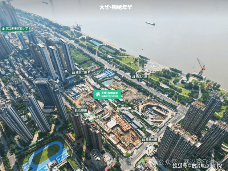 由于项目与长江之间的用地尚处于待开发阶段,目前大华锦绣年华能够实现一线观江,而其余东南西三面多为成熟社区,整体城市界面较为出色。