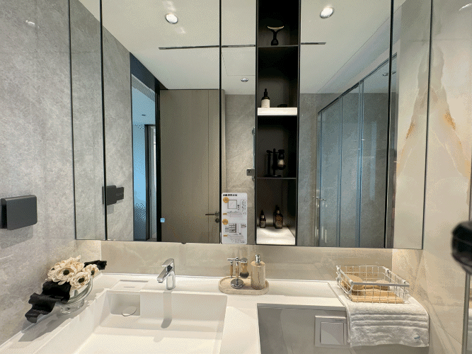 装标上,主次卫均智能马桶盖、电热毛巾架、恒温顶喷花洒,同时主卫-超大通高通边镜柜。