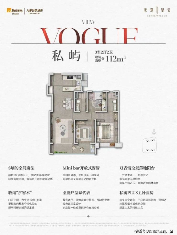 建面约112㎡三房两厅两卫,打造S墙的空间魔法,预留冰箱/储物位释放厨房空间,营造更开阔的家庭动线;双开间全景落地阳台,直面诗意园林盛景。