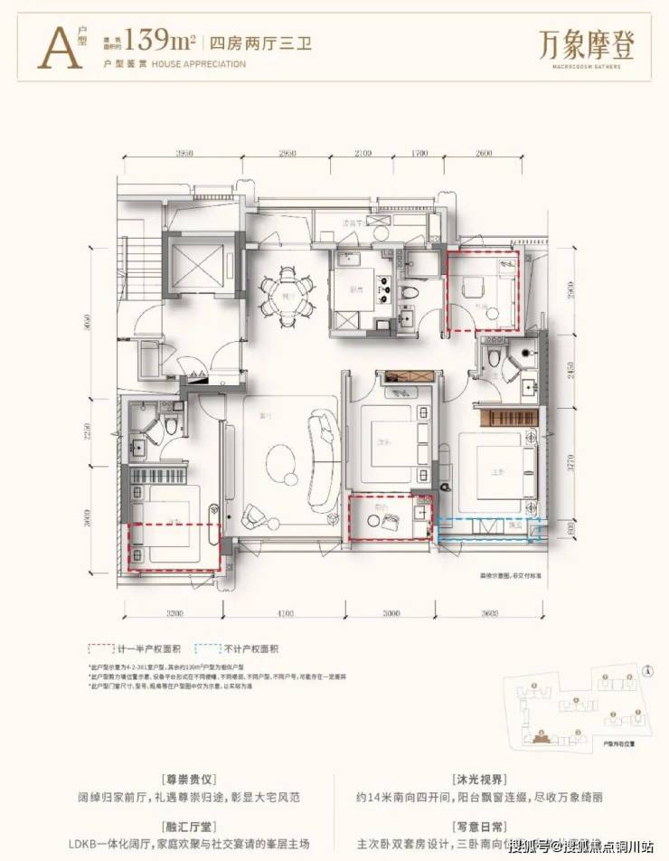 潮越万象府以目前“区府唯一”的建面约139㎡双套房设计,计容新规之下,户型做了精细化调整,南北双阳台,加上赠送面积得房率接近90%,约14米南向四开间,尤其三卧朝南的格局,真正实现全家人的“阳光平权”;成为市场瞩目的明星产品。