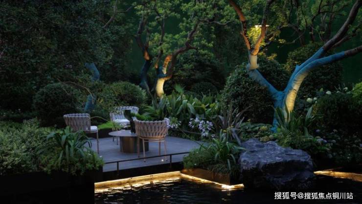 设计充分利用场地周边积极因素,溯源无锡寄畅园。巧于因借,步移景异,置石理水、曲径通幽,融入“门庭、飞瀑、水涧、雅亭、繁花、静林、醒石、清泉”古典造园元素,结合现代人审美营造东方隐奢的气质,大雅至简的空间,洄游于半山半水之间,每走一步是不同风景,每看一眼都有不同的心境。