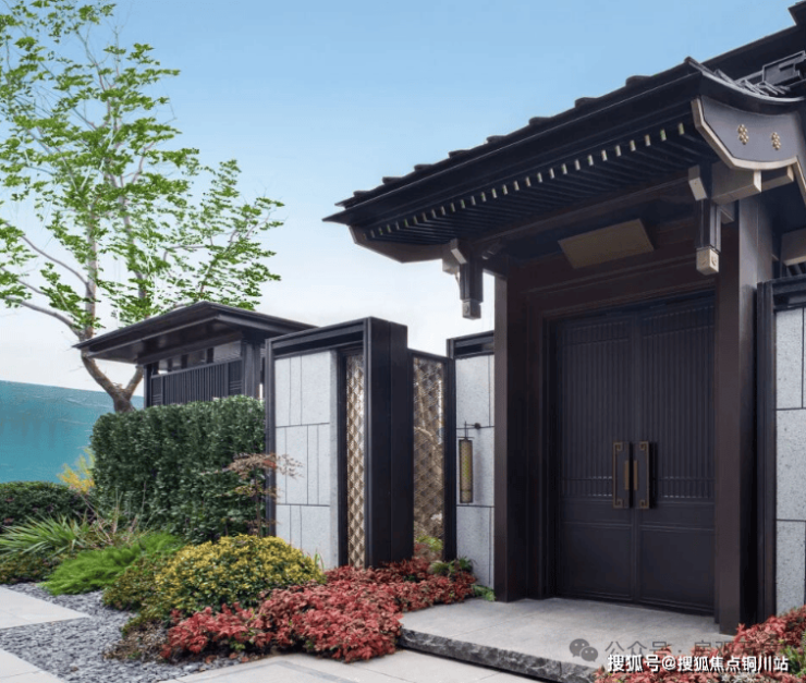 传统中式建筑中常见的挑檐设计被改为平直的檐口,摒弃了繁复的装饰,更符合当代人的审美追求,展现出简约而不简单的设计美感。