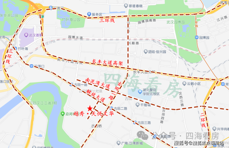 自驾:项目门口就是古田两大重点主干道,古田二路和解放大道,古田二路向北可至三环线、东西湖,并连接长丰大道高架,上二环线,向南可至汉阳;解放大道可上二环线和三环线。另外区域在改造南泥湾大道,建成后可以直通泛海中央商务区。