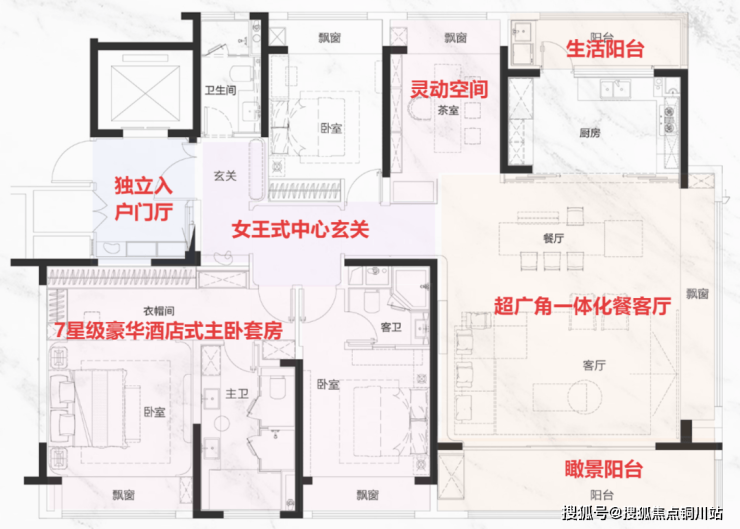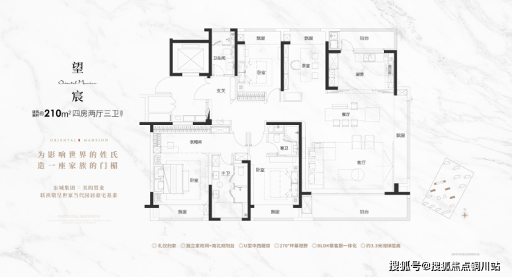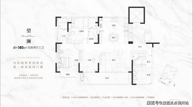 建面180㎡的户型。这个面积段的产品越来越卷,也越来越难以出色。但东望府的这个户型偏偏就在条条框框中打出了一条新路。