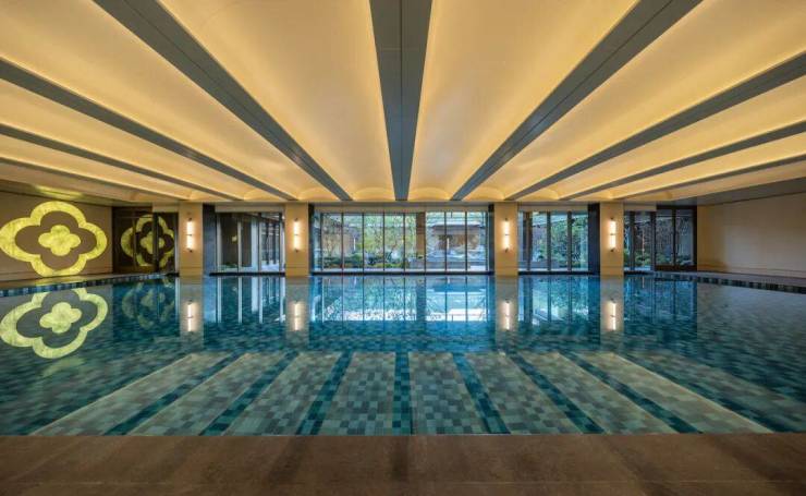 传统会所常被边缘化。承宁府融合安缦酒店中式禅意和现代奢华的空间功能打造手法,把恒温泳池、私宴厅、瑜珈空间、健身房等高阶配套,结合从五代到宋代时期的十二副名画汲取的设计灵感,以 “ 一府十二卷 ” 的空间形制深植社区心脏。