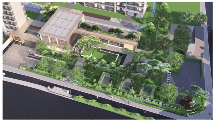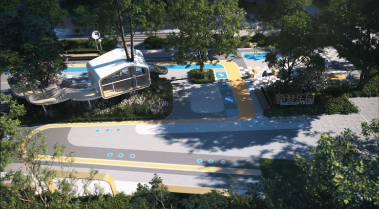 景观整体采用“一环两轴十园”的布局,包括岛屿花园、童梦乐园以及森氧悦动、浮光客厅等多重空间。