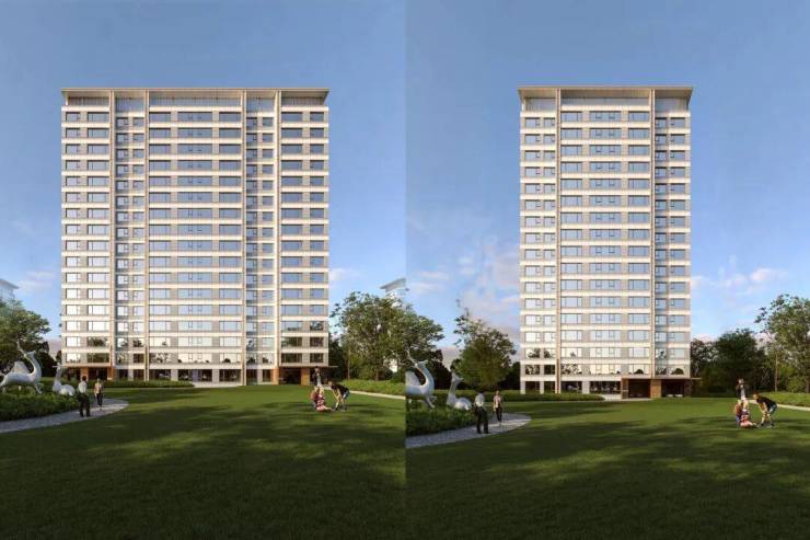 油画框式建筑立面,大面积金属漆一体板与铝板搭配臻贵石材,超高窗墙比,让视野、采光极大化,颜值和品质双双在线。