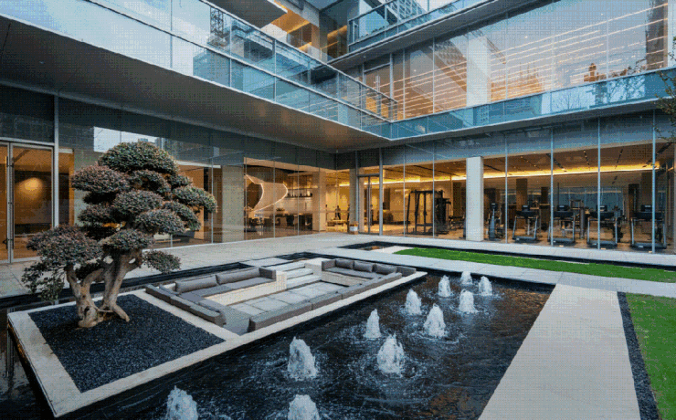 下沉式露天庭院:以园林瀑布、艺术中庭水景为背景,成为私宴品鉴、圈层沙龙的理想舞台;