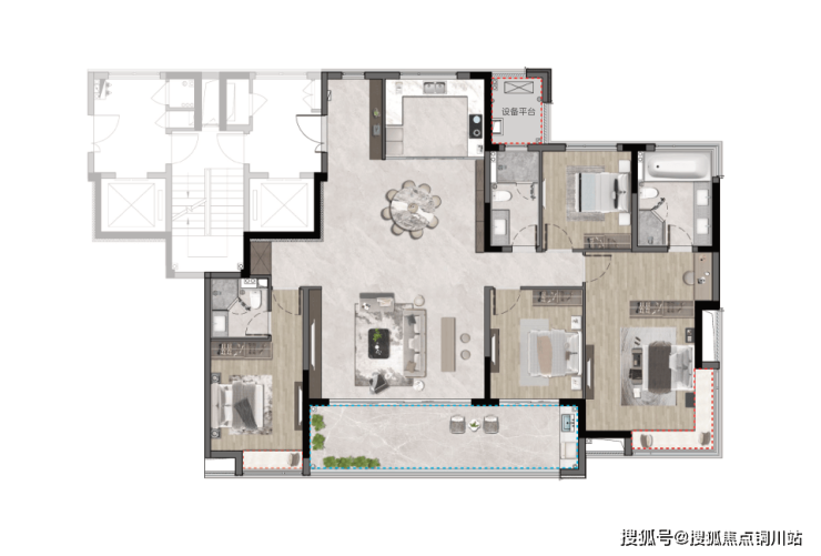 诠释“居住平权”内涵,多开间朝南,约17.6m大开间奢适尺度,让阳光与自然融入每个角落,更有灵动拓展的可能性。