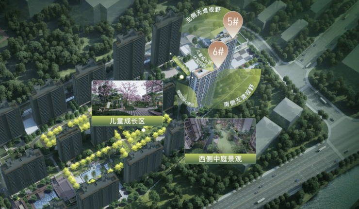 5#南北通透,毫无遮挡,6#楼南向无遮,北面拥有超65m奢阔楼间距,阳光与盛景全天候浸润室内,告别老房 “暗厅暗卧” 的困扰;与此同时,5#&6#双座踞守东西景观中轴核“芯”,近距认知花园、以《江岸望山》为蓝本的东方山水庭院,推窗见景,社区精粹风光成为日常生活的背景。