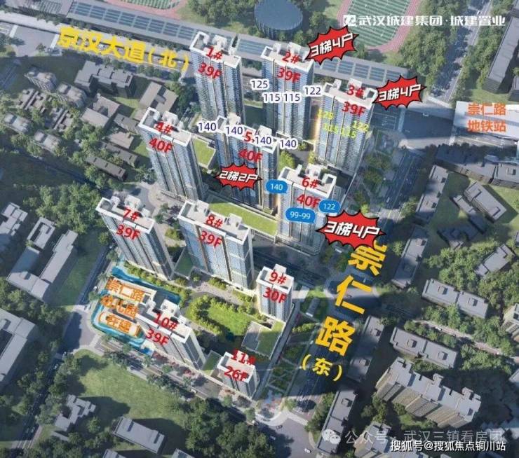 2号楼3号楼:总高39层,3梯4户