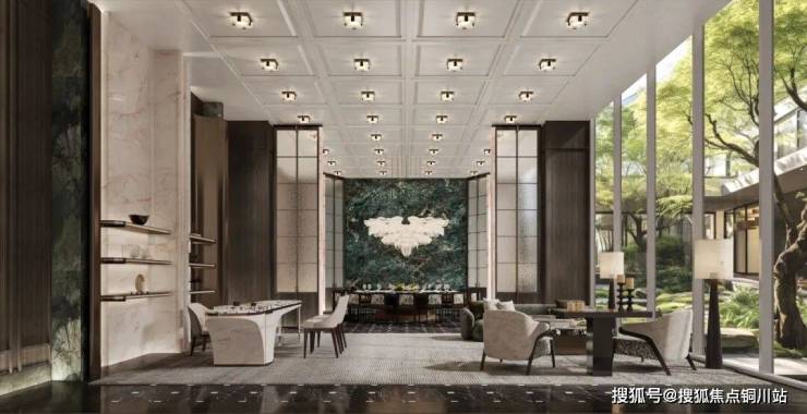 约2000㎡下沉式庭院会所,集合下沉式飞瀑庭院与5+2私属高定会所下沉式庭院,其中下沉式庭院以观庭四景“雅筑观瀑、云帘瀑声、水汀澹然、幽林逸心”的勾绘奢华,感知舒缓悠然的体验。一方立体的自然秘境,飞瀑与流水浪漫交织,乌桕树蜿蜒叠翠,让归家转瞬间获得宁静的力量。