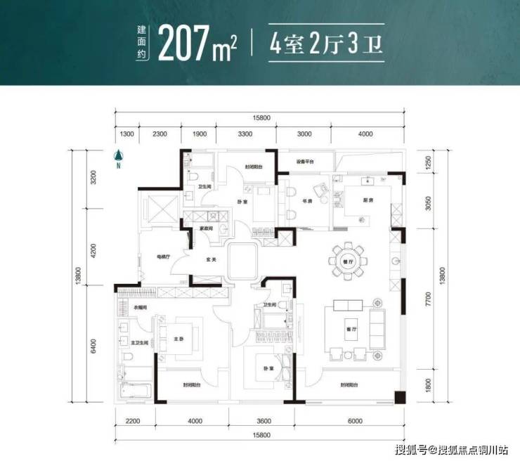 海信·君玺的精研户型,提供建面约120㎡/143㎡/166㎡/207㎡四种户型。