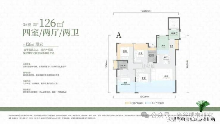 126㎡做四房:不仅做到了四房,甚至实现了私梯入户,还带270°全景舱,这配置以前都是180㎡以上大平层才敢想的。