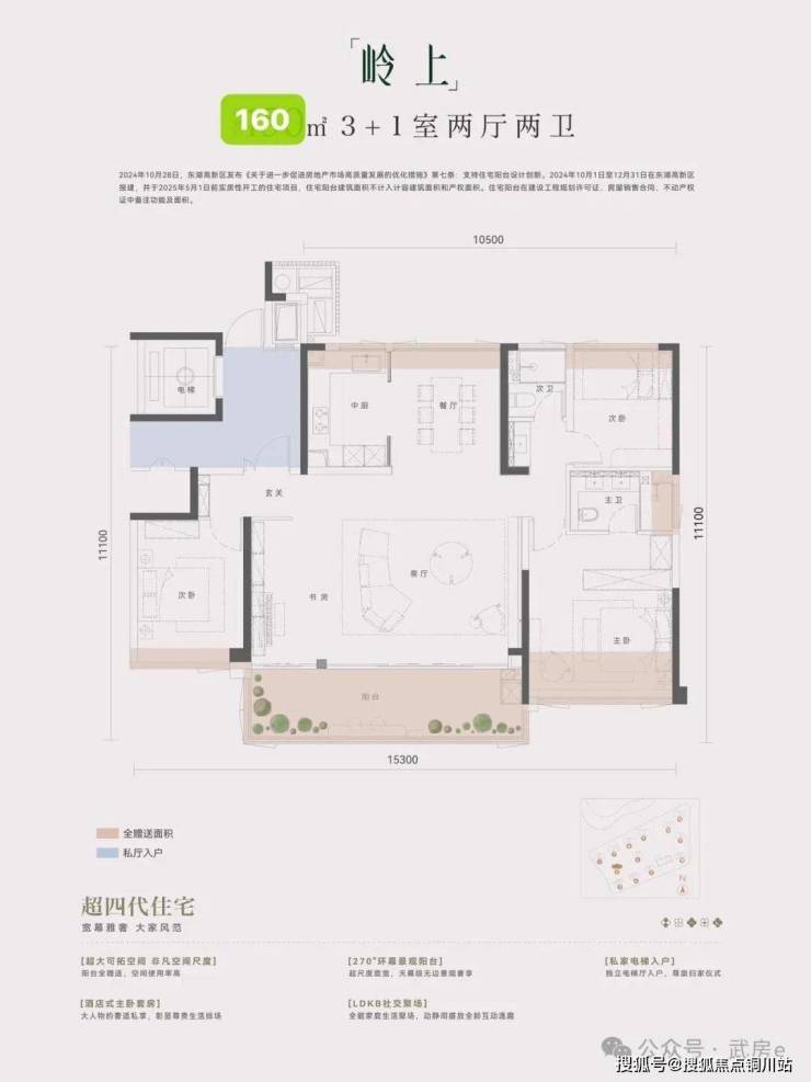 2. 独梯独户,端户布局,南北通透,南向面宽高达15米