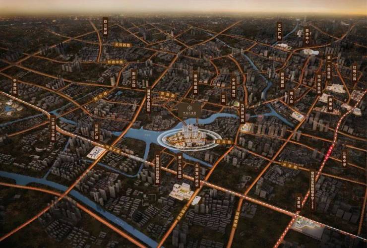 项目坐落在老城厢,处于烟火气浓郁的三区交汇处。直线距离约2km范围内就覆盖了九洲新世界广场、常州M会员商店以及万象城三大主题商场。