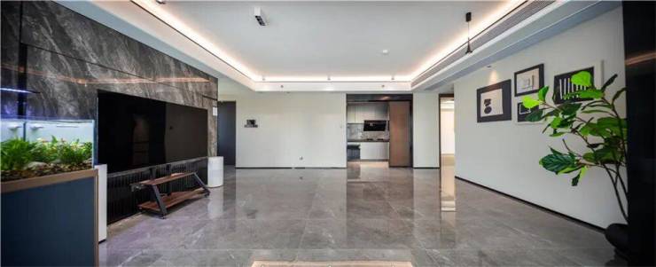 再如客厅配置了轻奢石材背景墙,做好空调出风口、踢脚线,预留空调盒,通铺大板砖,还有卧室通高门、双眼皮吊顶、床尾双插座等,不仅美观大气,而且减少了业主后期加装电器的很多麻烦,既实用,更耐用。