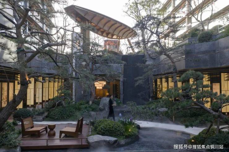 示范区师法留园“缩景乾坤”之精妙,在小尺度空间中营造三进庭院,打造约1500㎡原著世家典藏馆。一进“芳薇院”,精选约300年老桩紫薇置于整块顶级汉白玉打造的盆器内,是苏派盆景的“缩景”艺术集大成体现。穿过“玲珑幻廊”,二进庭院“玲珑万象”视线豁然开朗,四水归堂下的日照金山昆仑雕塑、以及月榭观澜内的雨打芭蕉和月洞门,带来桃花源记般的视觉惊喜。三进下沉庭院,取意“高山流水”,约8米高的龙门叠瀑顺势而下,汉白玉精雕石拱桥复刻网师园引静桥,水下群鲤欢腾,蕴含着“鲤跃龙门”的美好祝福。游园入院间,喧嚣渐远,浮躁尽褪,完成从见自然、到见天地、再到见内心的情绪升华及情感共鸣。