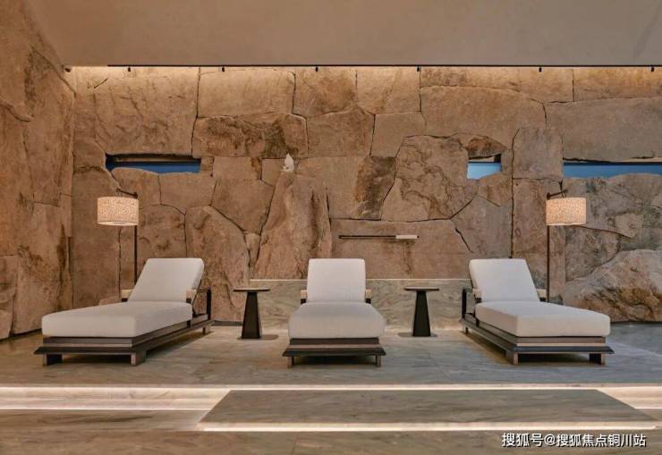 面对数百块、60余吨天然毛石塑造泳池墙面的挑战,项目团队运用数字化选材、1:1地面预拼装、模块化运输与微差调节安装体系,实现了粗犷原石与精细空间的完美融合,成就了兼具自然野性肌理与精准空间叙事的艺术品。
