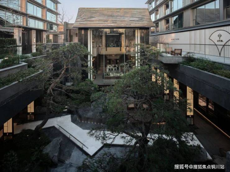 空间亮点:中心打造约12M×23M的三层立体庭院,借鉴宋画《四景山水图》及“三远法”,构建“宋韵十集”,让运河文化与宋式美学可游、可感。主入口以90米横向延展的庑殿顶与皇家碧玉高级石材流水景墙,复刻古运河“光之水韵”。