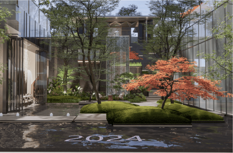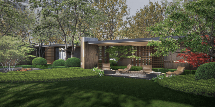 小区采用围合式布局,打造了超 7200 方的中心园林景观。景观规划以大面积下沉式园林场景为特色,包括弧形叠级花池、镜面水景等,营造出富有层次感和艺术感的园林空间。园林内还规划了约 1400 平的光影式会客厅、健身跑道、阳光大草坪、儿童游玩区、多功能健身区等,满足不同年龄段业主的休闲娱乐需求,让业主在社区内就能享受丰富多彩的生活。