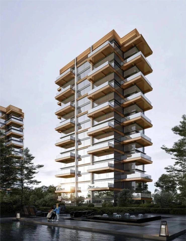 大师的“叠级”艺术不仅仅体现在景观和公区的设计上,项外立面也充满了大师“叠级”艺术味道。以斯卡帕的“叠级艺术”为基础,项目又融合现代主义的建筑肌理,达到大面积玻璃呈现悬浮空中的“金镶玉”效果,最终实现“金石玉印”的公建化立面。