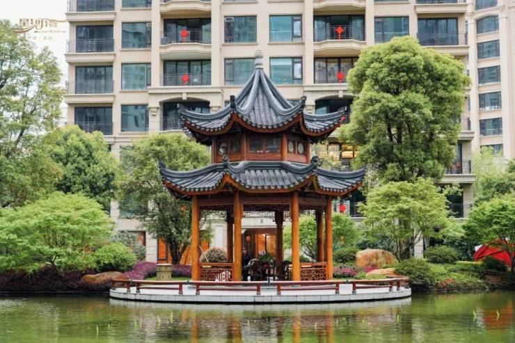 建筑设计:在武汉多追求科技住宅和玻璃幕墙外立面的当下,武汉星河湾的苏式园林和 3.4 米层高,以及弧形阳台的设计独树一帜,建筑整体风格典雅大气,彰显名门世家风范。