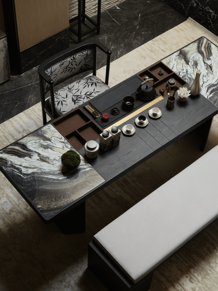 凤鸣雲庐自规划之初,就以社区峯层人士为核心,规划全周期高配服务。以项目已公开的宋风美学会所为例:恢弘大气的门三段式门楼主体,彰显宋代文会之雅的私属空间,处处奢贵的选材,构筑出空间的身份认同感。