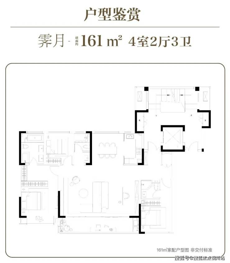 建面约161㎡4房2厅3卫户型:南向大横厅,奢阔尺度;阔绰阳台,IMAX观景视野;舒适三卫,洗漱不排队。