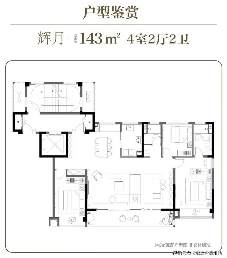 建面约143㎡4房2厅2卫户型:南向四开间,大面宽阔阳台;星级主卧,独立卫浴+独立衣帽间;多功能区,灵动空间自由打造。