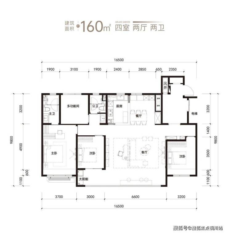 建面160平产品,是妥妥的「真宽厅」四房户型。单论户型,除了不是三卫、不是电梯厅明厅,其他方面还不错。