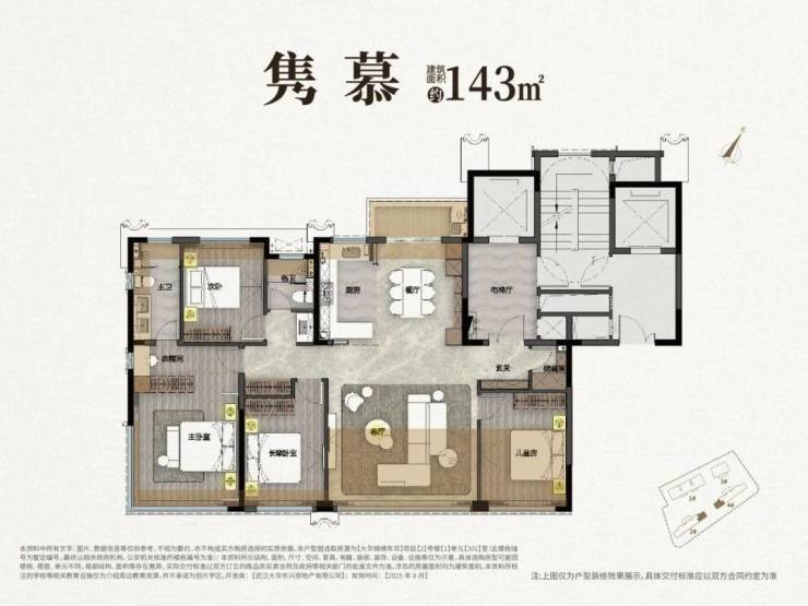 143㎡四房户型更惊艳,南向面宽约15.8米,四房格局下仍能拥有5.6米阔绰客厅开间,可拓展面积约43㎡,拓展后使用率高达约106%,完美适配二胎家庭或三代同堂。