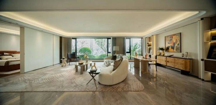 奢阔空间设计深研现代家庭需求,宽敞客厅是亲友欢聚的主场,大尺度阳台兼具采光通风与观景功能,将江滩的壮阔画卷框成 “会呼吸的背景墙”;主卧套房配备独立观景卫浴,清晨在浴缸里看江雾漫过堤岸,夜晚枕着江涛声入眠。