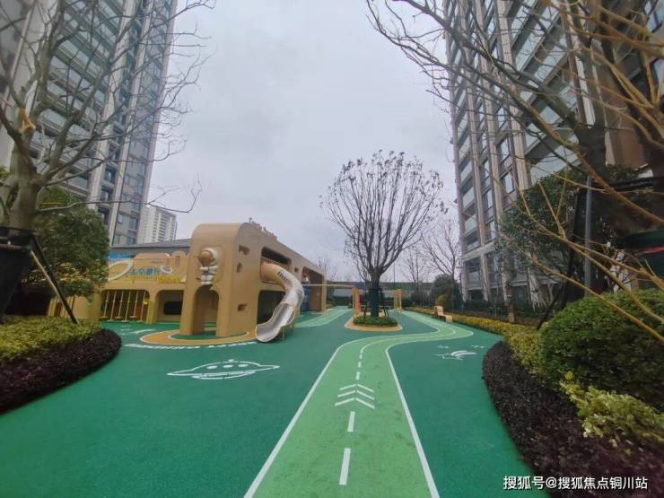 小区内部划出了一条绿色的跑道,方便业主锻炼。