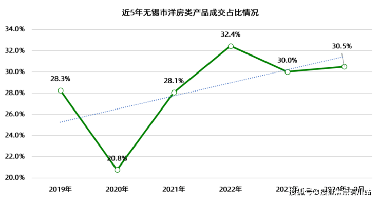 从无锡全市商品住宅成交情况来看,洋房产品成交占比逐年提升,市占率已接近三分之一,无锡市场对洋房产品的追捧可见一斑;