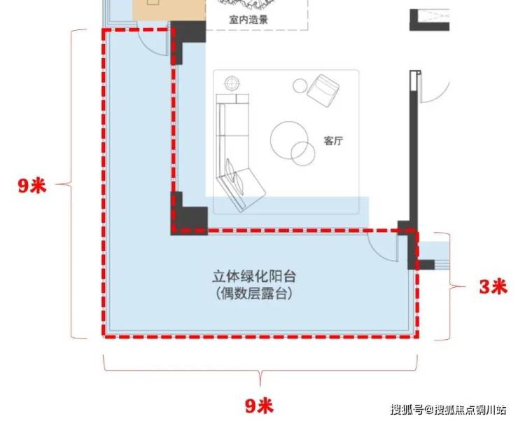 粗略计算了下,这个露台接近40㎡,相当于直接增加了一个客厅的面积,可以在露台打造秘密花园、品茗、举办派对。