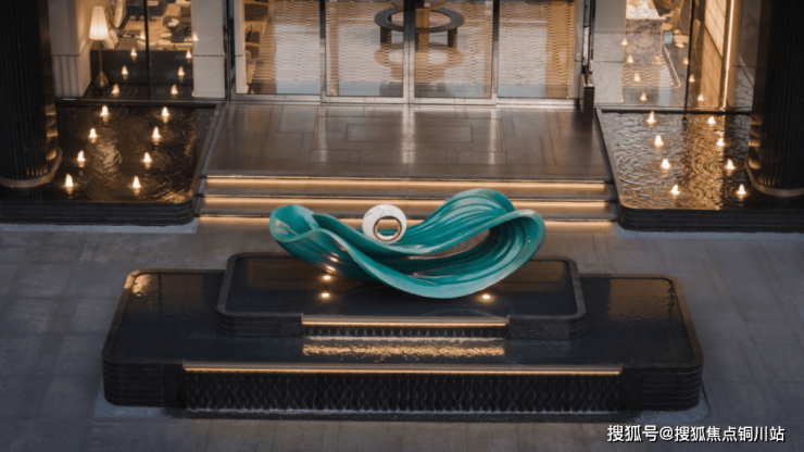 入门处,核心亮点莫过于龙鳞状艺术雕塑。双层叠水上部,细密的龙鳞雕刻层层叠叠,在光影变幻下折射出粼粼波光。运河水纹与海浪翻涌在此处相逢,展现独特的美学风格。