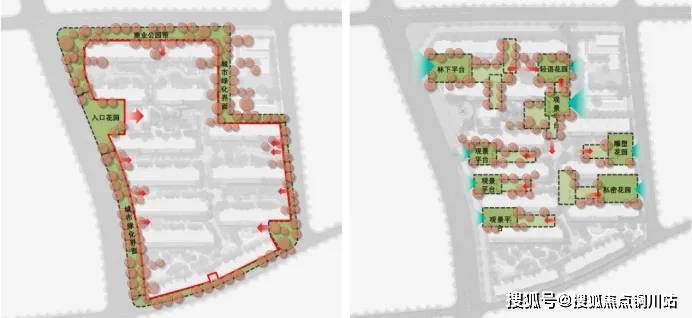 进入小区后,架空平台所带来的不被打扰的园林空间,被精心打造成一套立体的游园归家系统,下沉庭院与架空平台上的8个观景平台和口袋花园,完整的包裹住归家的情绪。