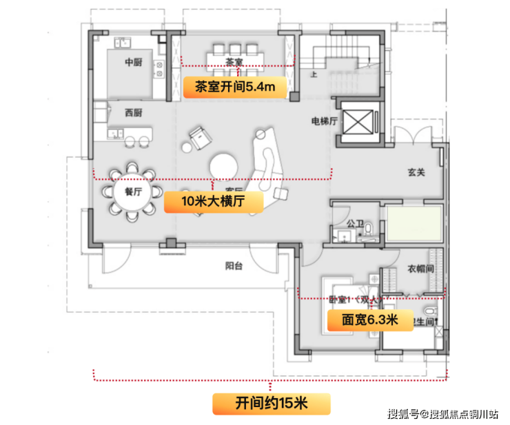 亮点1:横向尺度爆表!每一层,面宽都直逼顶级大平层~