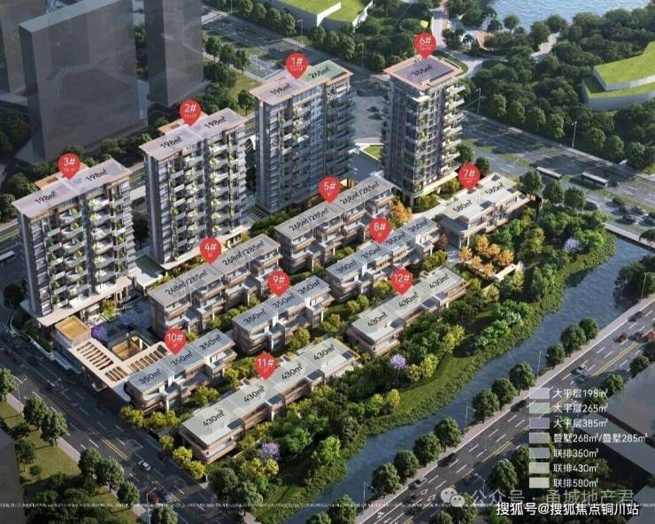 面积段更是纯粹的塔尖配置:建面约268-285㎡的双叠叠墅(无中叠)、建面约350-580㎡的两层联排、建面约198-385㎡的一线湖居四代宅!