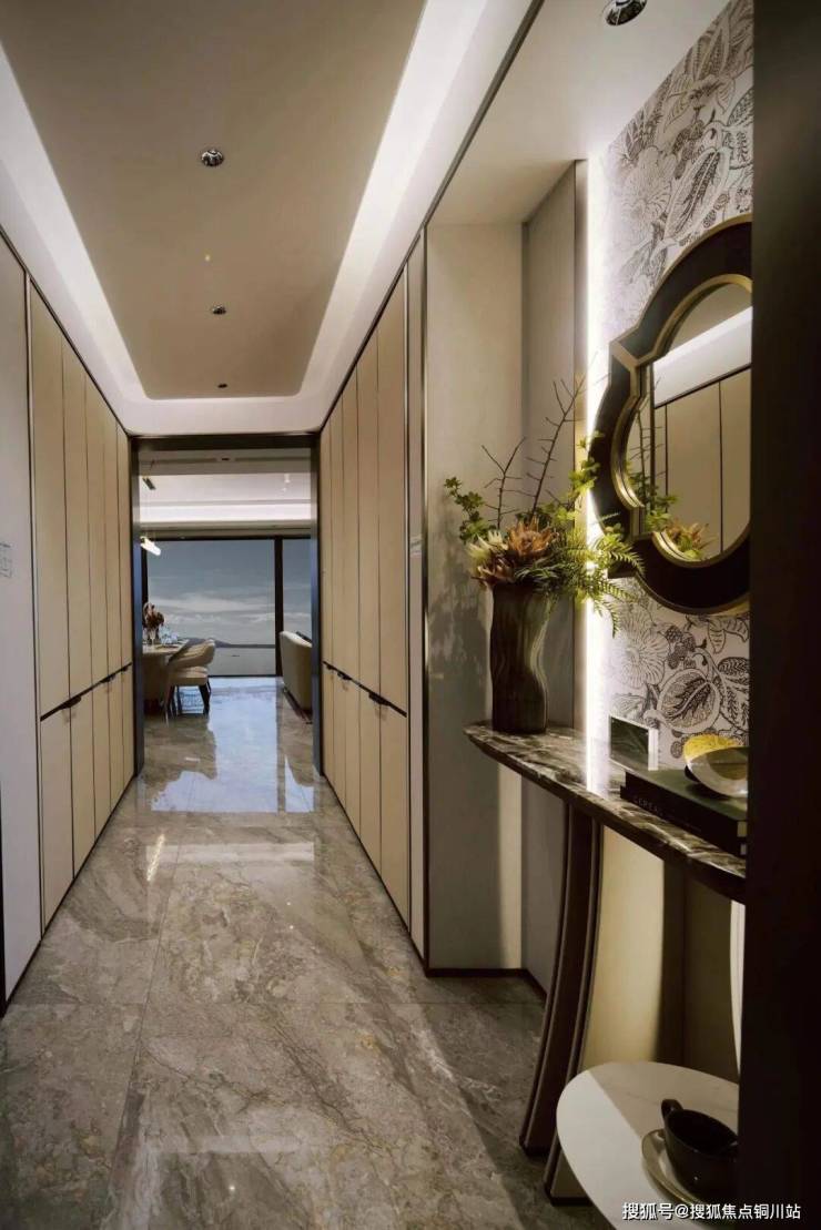 收纳空间的设计也更接近实际使用场景。进门处超大的玄关通道,两侧墙体可作为收纳柜使用,鞋子、外套、雨伞等小物件从容收纳。在卫生间、厨房……这样的收纳细节,比比皆是。