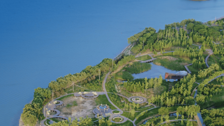 更为难得的是,在璞悦的南边,还有一条由西向东穿流而过的干渠,水面有60米宽。