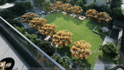 视野突破边界,楼下的园林风景尽收眼底,将空间的尺度和舒适感受直接拉满。